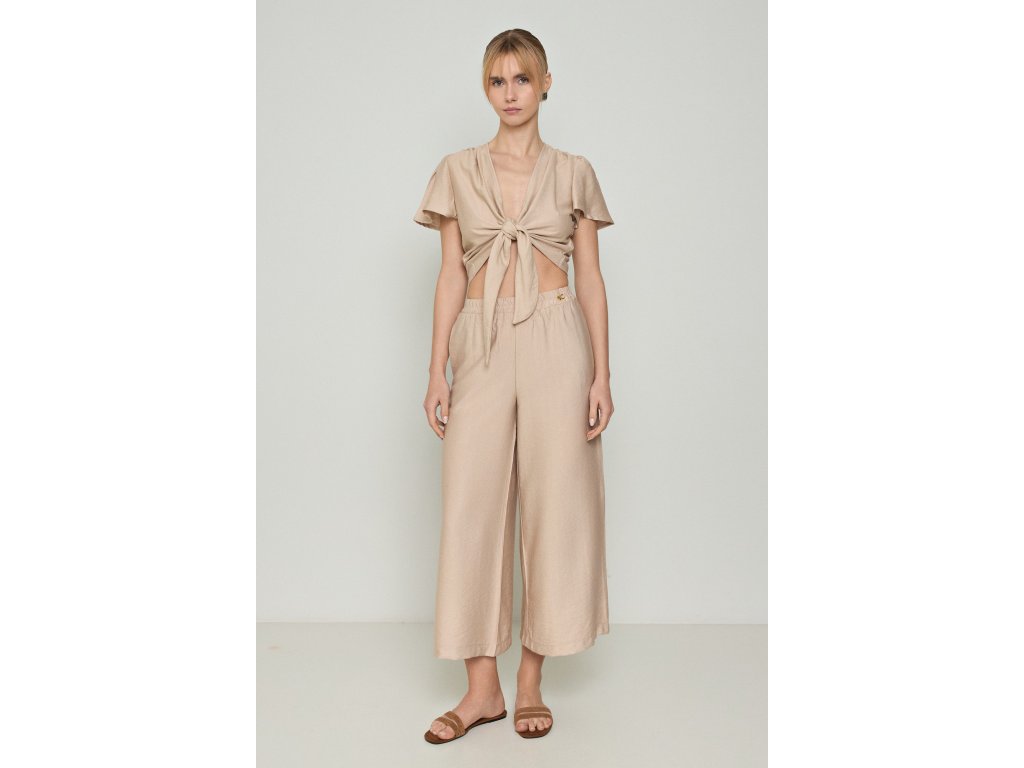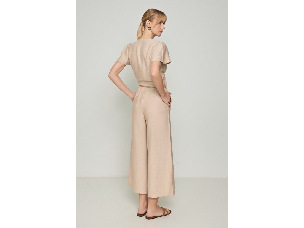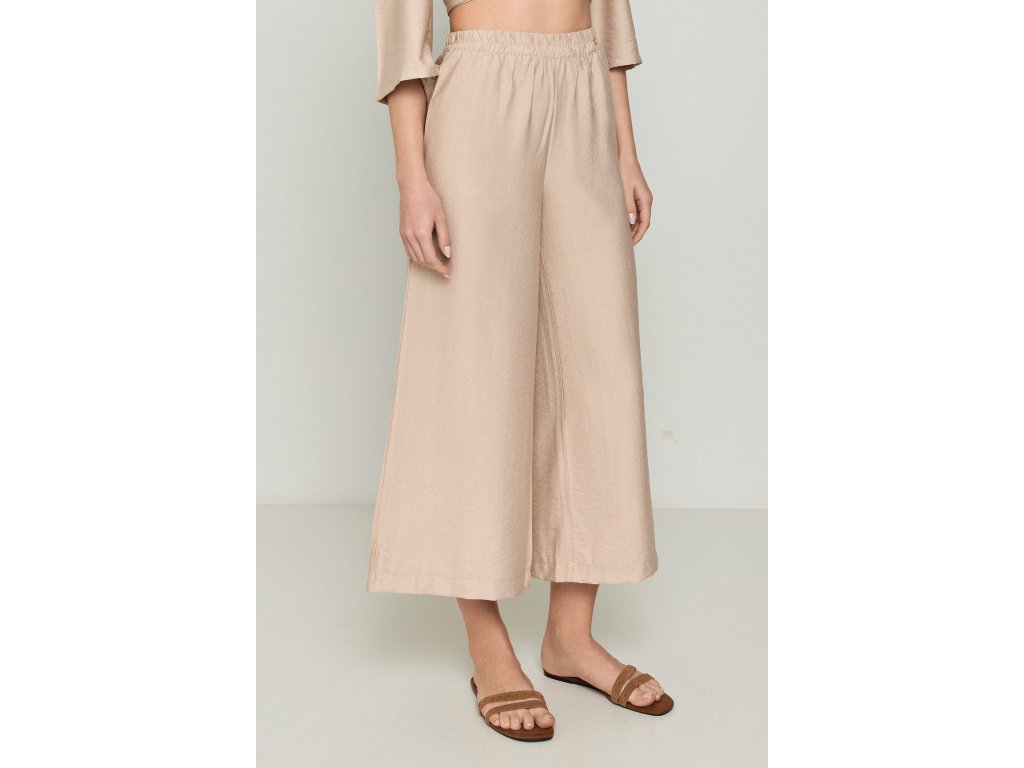 Rozšířené kalhoty s gumou - béžové